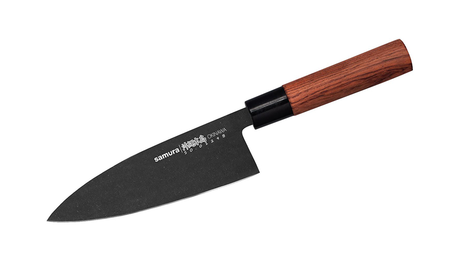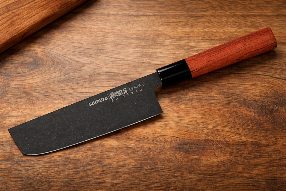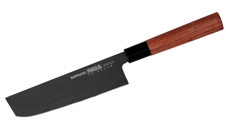 Сантоку — справляется с большинством задач. Это японский аналог европейского шеф-ножа, который часто называют «азиатским шефом». Универсальный инструмент подходит для нарезки мяса и рыбы, шинковки овощей и зелени, подготовки к подаче холодных закусок. За счет широкого лезвия им удобно переносить нарубленные продукты в кастрюлю или сковороду.
