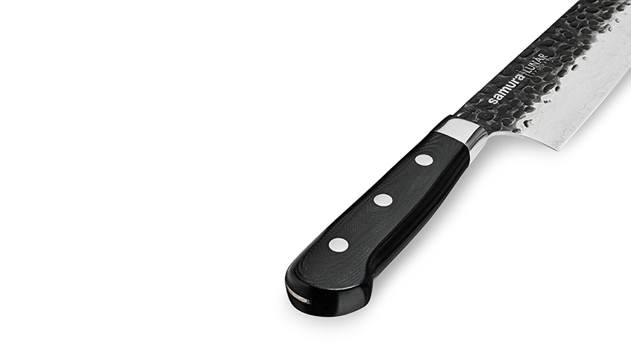 Форма и материал рукояти. Традиционная японская рукоять — овальная или восьмигранная. Европейский вариант имеет упор на конце, который не дает ножу выпасть из ладони. При любой форме материал должен препятствовать скольжению. Поэтому производители используют дерево, композит на основе стекловолокна (G-10) или микарту — волокнистый материал, залитый фенольной смолой.